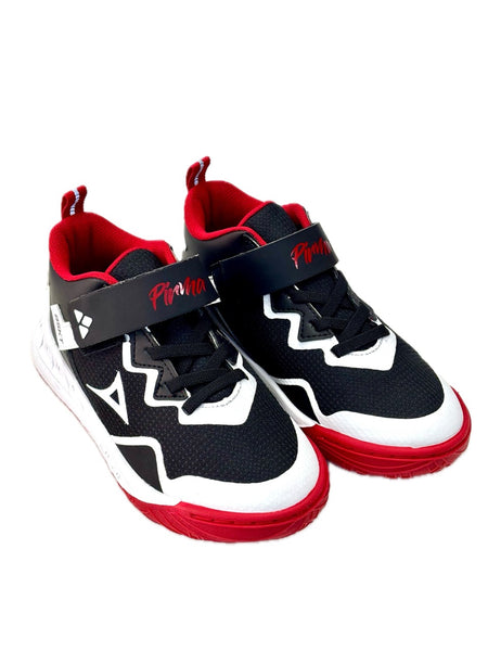 - Tenis Para Niño Tipo Choclo Corte Textil Negro/Rojo