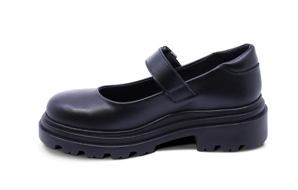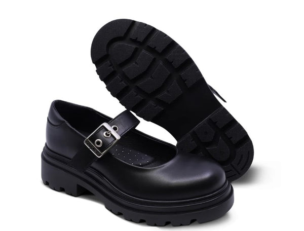 - Calzado Escolar Moderno Suela Robusta y Hebilla Metalica Piel Negra para Niñas