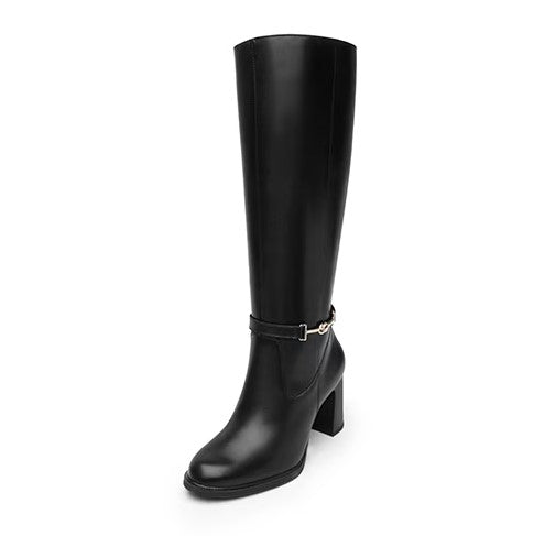 • Bota Alta Para Dama Tacón Alto de Cierre Corte Piel Color Negro