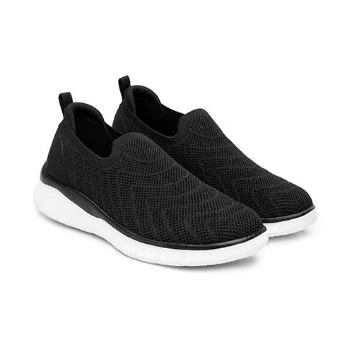 - Tenis Para Dama Tipo Slip On Auto Ajustable Corte Textil Color Negro