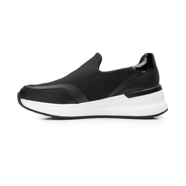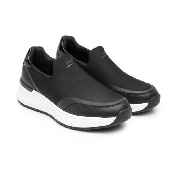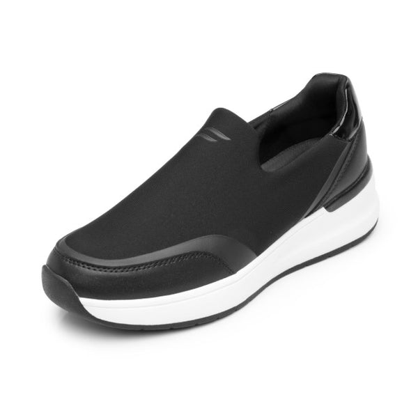 - Tenis Para Dama Tipo Slip On Auto Ajustable Corte Textil Color Negro