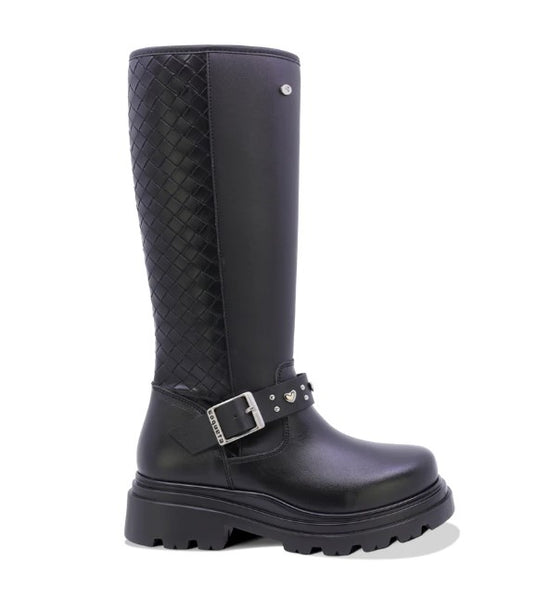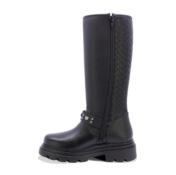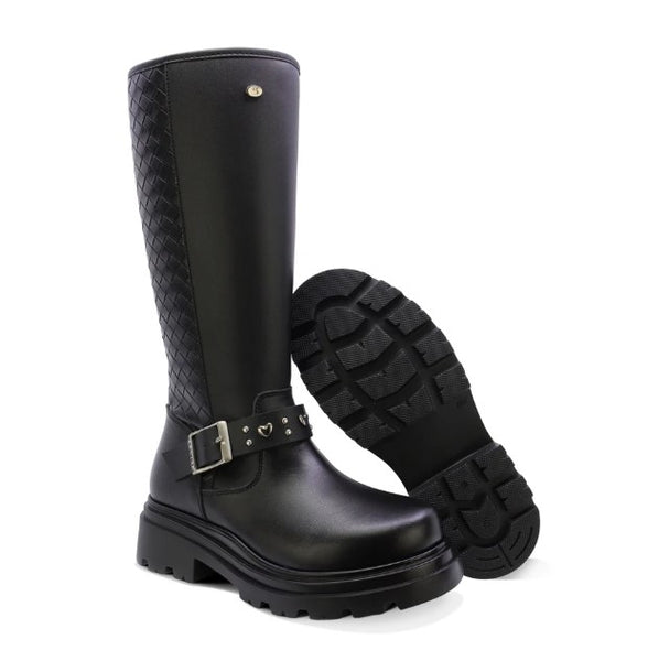- Bota Alta de Cierre Para Niña, Señorita y Dama en Corte Sintético Color Negro