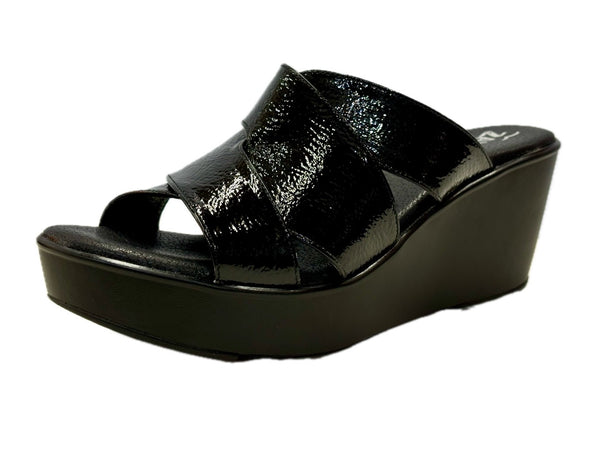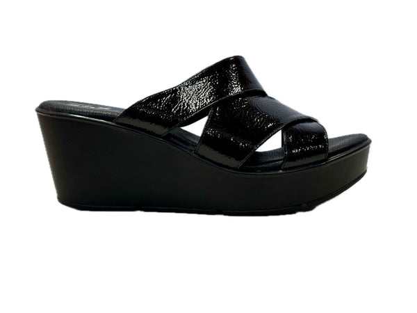 • Calzado Tipo Sueco Para Dama Piel Charol Arrugado Tono Negro