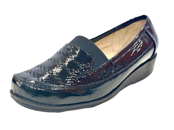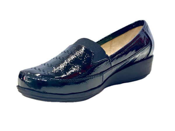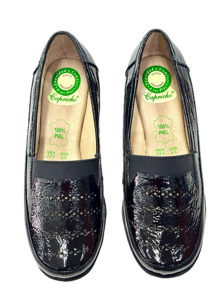 - Mocasín Para Dama en Piel Charol Arrugado Tono Negro
