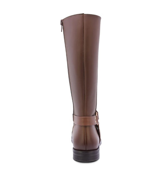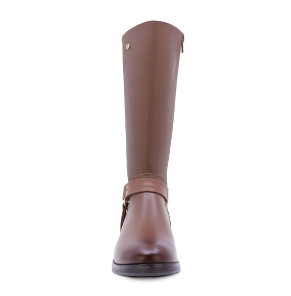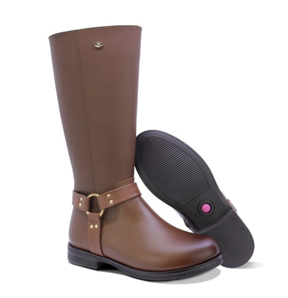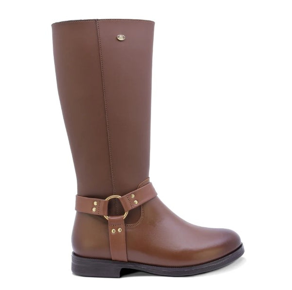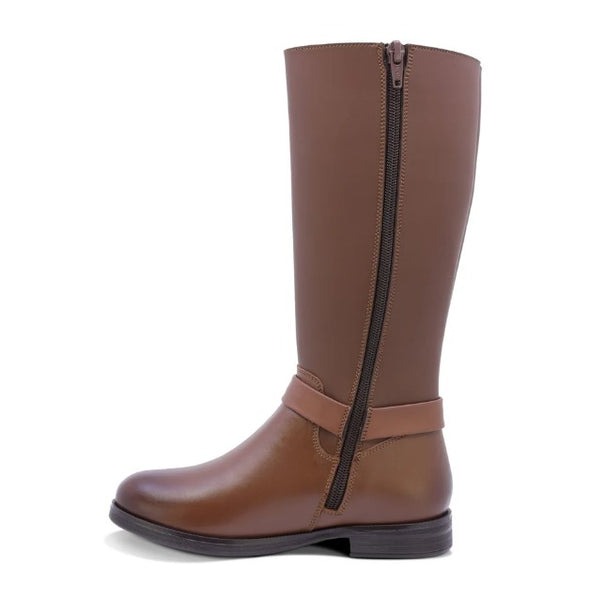 - Bota Alta de Cierre Tipo Equitación Para Niña y Jovencita en Tubo Corte Sintético y Corte Piel Tono Café