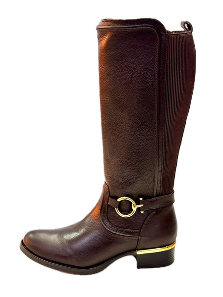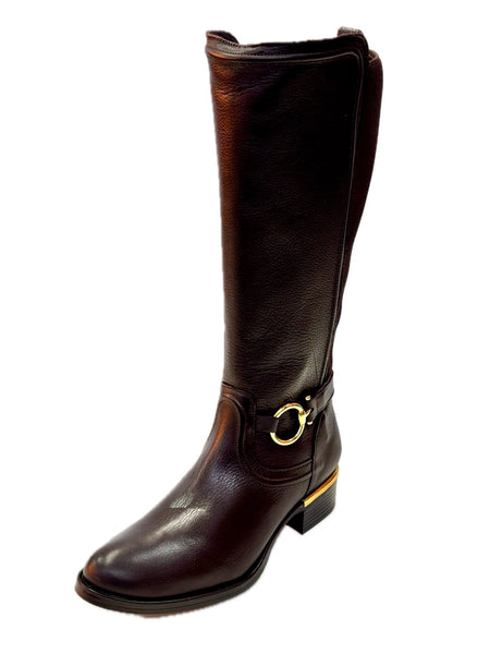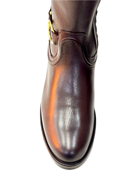 - Bota Alta Con Cierre Interno Adorno de Herraje Dorado