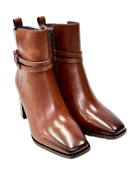 Fino Botín Para Dama en Corte Piel Tipo Becerro Tono Café Con Punta Chata