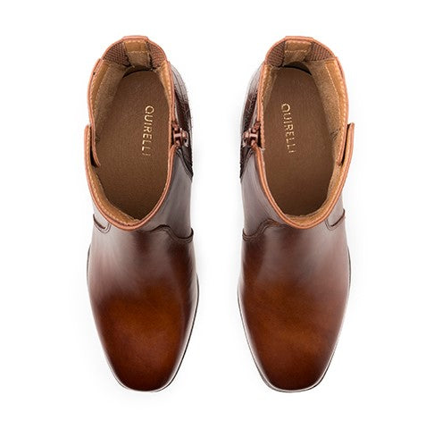 Fino Botín Para Dama en Corte Piel Tipo Becerro Tono Café Con Punta Chata